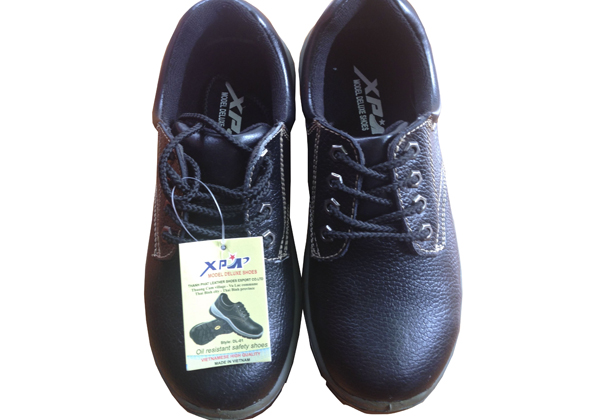 - Da xịn, đế cao su, mũi thép, đế thép, chữ XP màu đỏ ở đế